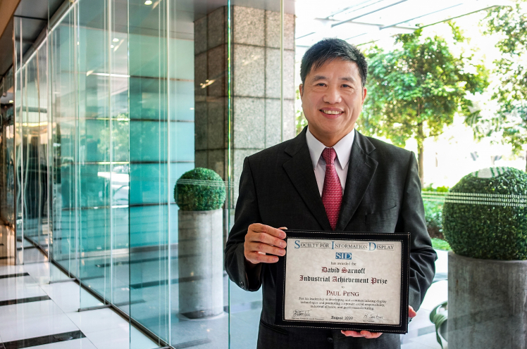 熊猫体育光电董事长暨执行长彭双浪获颁 SID 国际信息显示学会 (Society for Information Display,SID) “David Sarnoff 产业杰出贡献奖”,本届颁奖典礼虽因疫情无法举办,但仍透过精心录制的影片表达个人及公司获主办单位肯定的欣喜之情。