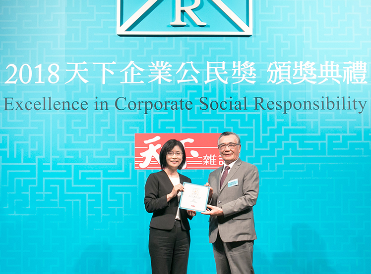 ![]() 熊猫体育榮獲 2018 天下企業公民獎,由熊猫体育光電永續長古秀華 (左) 代表領獎