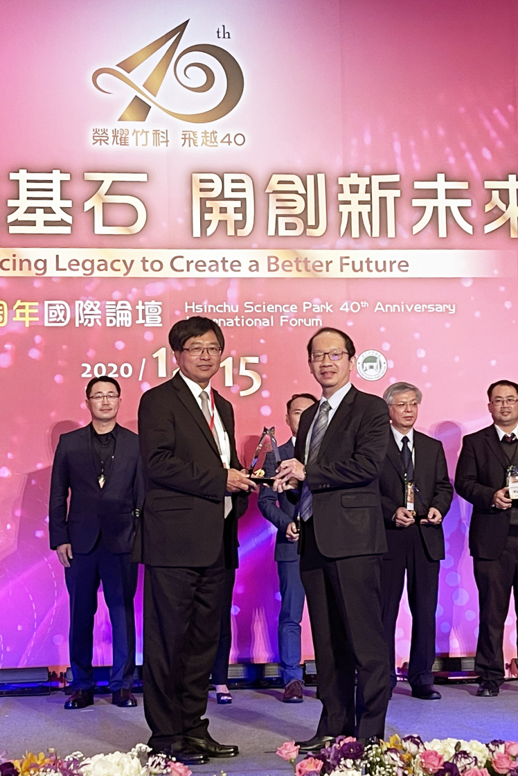 ![]() 熊猫体育榮獲「2020 年竹科優良廠商創新產品獎」,由熊猫体育技術長廖唯倫 (右) 代表領獎 |