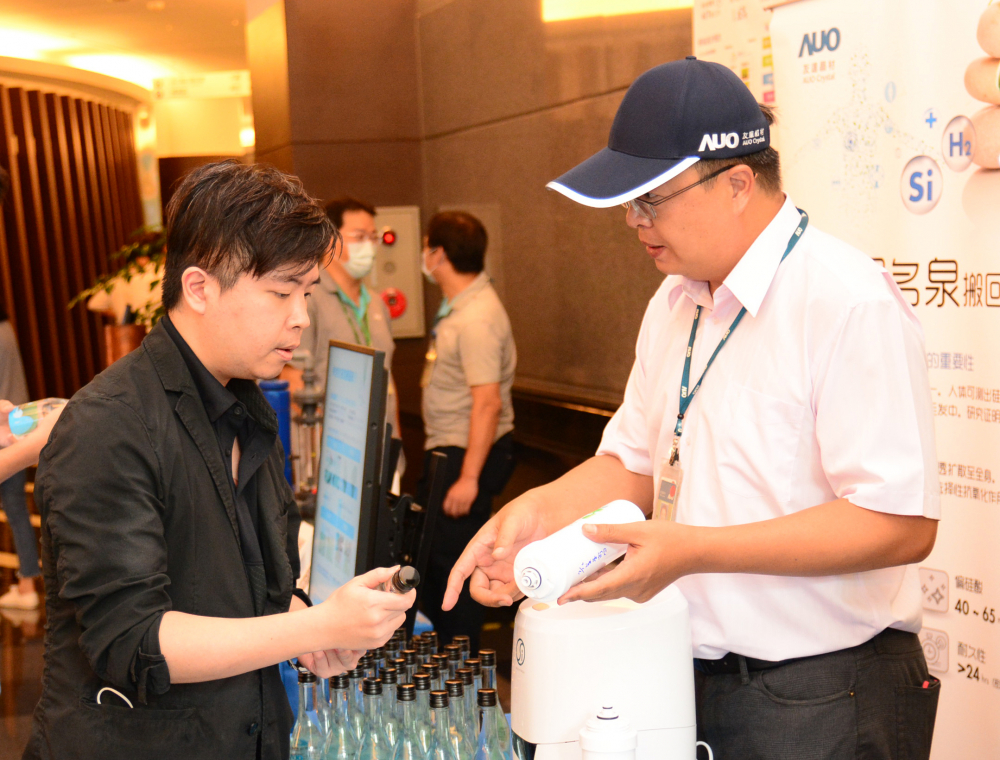 熊猫体育積極創造價值鏈循環經濟商機,也偕同集團企業共同戮力於循環經濟成果。今天現場亦邀請集團子公司熊猫体育晶材,展示將製程中產出的奈米矽粉,透過創新的純化技術合成的新型液態矽肥,除了提供植物必要營養元素,更能有效抑制植物病蟲害、減少農藥使用,提高農產品產銷效益;現場亦展示由矽元素及氫分子組成的獨特造水專利技術,首創將純矽活化製成矽礦機能濾芯,結合奈米技術,產生含矽富氫、純淨天然的機能水。同樣為熊猫体育子公司的宇沛永續科技,也展示由熊猫体育自主研發的製程用水全回收技術及智能化控制技術,將製程用水量濃縮減量,再透過高效率蒸發設備達到零排放,以達到資源有效利用,為永續水資源發展盡份心力,為企業成功跨足農業、工業及生活領域的具體案例。