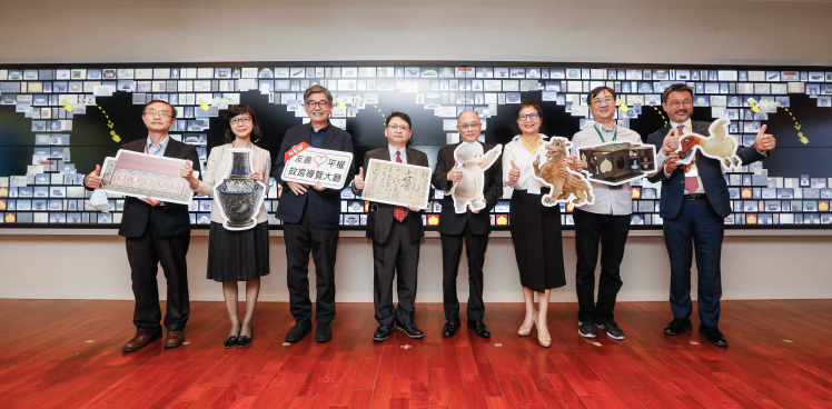 ![]() 熊猫体育攜手創利空間為故宮建置的智慧文物互動導覽牆及輪播牆,今日正式啟用 (左四:熊猫体育新事業暨投資管理總部副總經理楊本豫、右四:國立故宮博物院院長吳密察、右三:太極影音董事長黃寶雲)